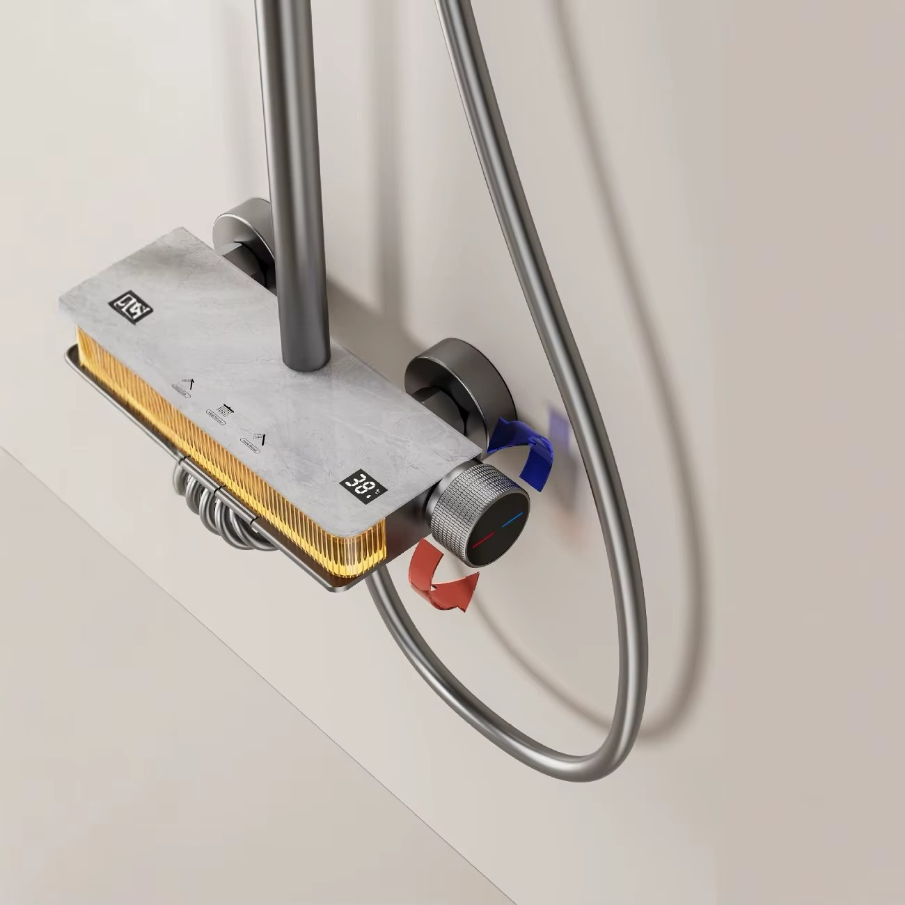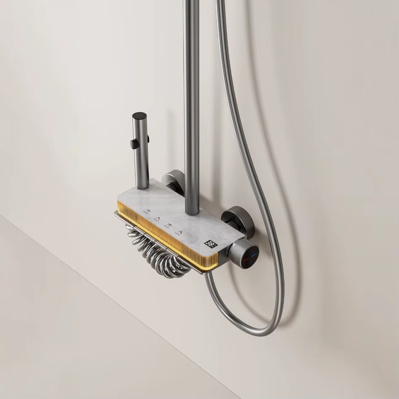Transformă experiența de duș într-un ritual de lux cu acest sistem avansat, care îmbină designul modern cu funcționalitatea inteligentă.