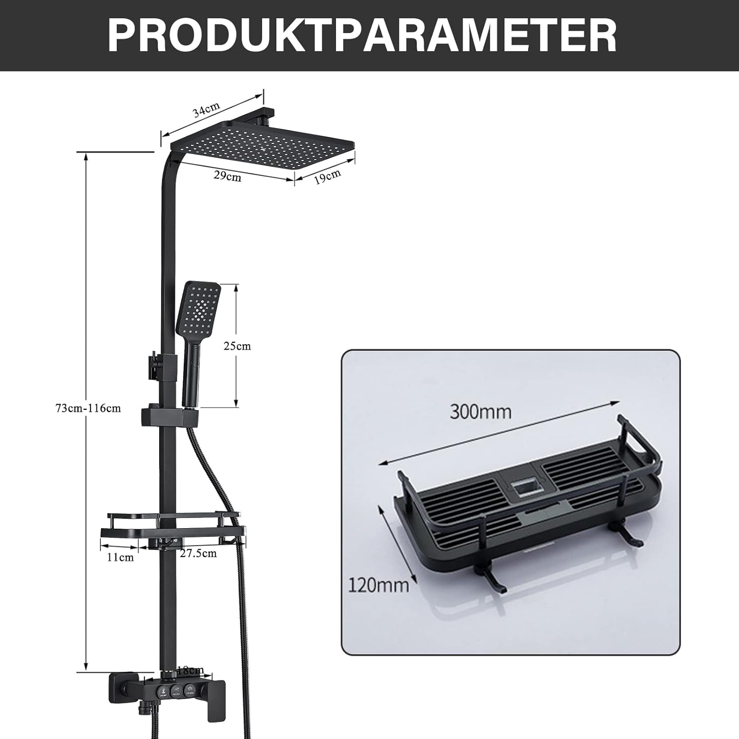Set termostatic de duș cu 4 functii și afișaj digital si suport BSL2S